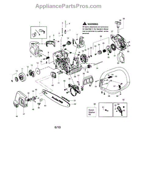 This clutch washer kid includes a clutch, a washer, and a clip. A washer helps to protect the engine from unwanted pressure at the joint where two parts connect. Washers help to spread the pressure evenly so that the fastener doesn’t move, which would cause corrosion and friction. Washers can wear down or corrode over time, leading to unwanted pressure in the chainsaw’s engine. Based on the location of this washer, replacing it may require different steps to take apart the engine. Be sure that the engine has cooled completely before attempting any repairs. This part is compatible with Poulan and Craftsman chainsaws and is a genuine OEM part sourced directly from the manufacturer.