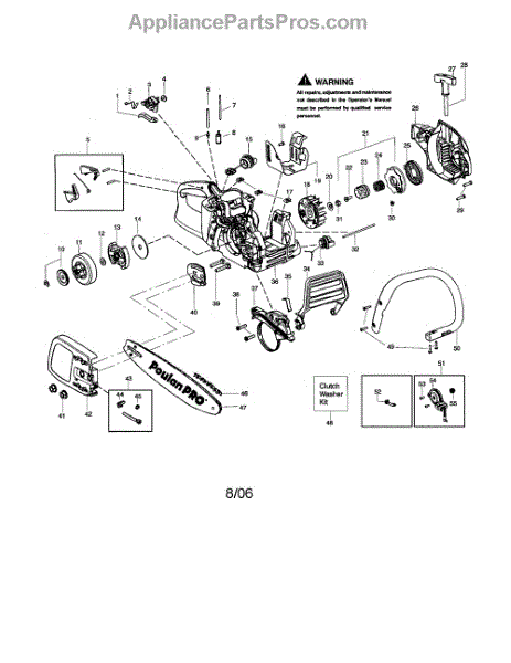This clutch washer kid includes a clutch, a washer, and a clip. A washer helps to protect the engine from unwanted pressure at the joint where two parts connect. Washers help to spread the pressure evenly so that the fastener doesn’t move, which would cause corrosion and friction. Washers can wear down or corrode over time, leading to unwanted pressure in the chainsaw’s engine. Based on the location of this washer, replacing it may require different steps to take apart the engine. Be sure that the engine has cooled completely before attempting any repairs. This part is compatible with Poulan and Craftsman chainsaws and is a genuine OEM part sourced directly from the manufacturer.
