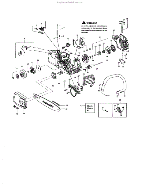 This clutch washer kid includes a clutch, a washer, and a clip. A washer helps to protect the engine from unwanted pressure at the joint where two parts connect. Washers help to spread the pressure evenly so that the fastener doesn’t move, which would cause corrosion and friction. Washers can wear down or corrode over time, leading to unwanted pressure in the chainsaw’s engine. Based on the location of this washer, replacing it may require different steps to take apart the engine. Be sure that the engine has cooled completely before attempting any repairs. This part is compatible with Poulan and Craftsman chainsaws and is a genuine OEM part sourced directly from the manufacturer.