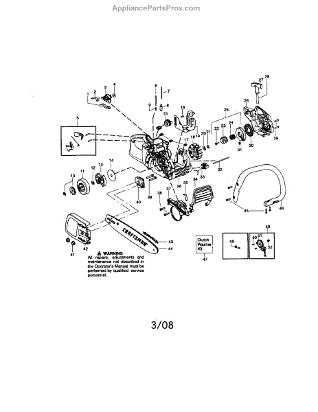 This clutch washer kid includes a clutch, a washer, and a clip. A washer helps to protect the engine from unwanted pressure at the joint where two parts connect. Washers help to spread the pressure evenly so that the fastener doesn’t move, which would cause corrosion and friction. Washers can wear down or corrode over time, leading to unwanted pressure in the chainsaw’s engine. Based on the location of this washer, replacing it may require different steps to take apart the engine. Be sure that the engine has cooled completely before attempting any repairs. This part is compatible with Poulan and Craftsman chainsaws and is a genuine OEM part sourced directly from the manufacturer.