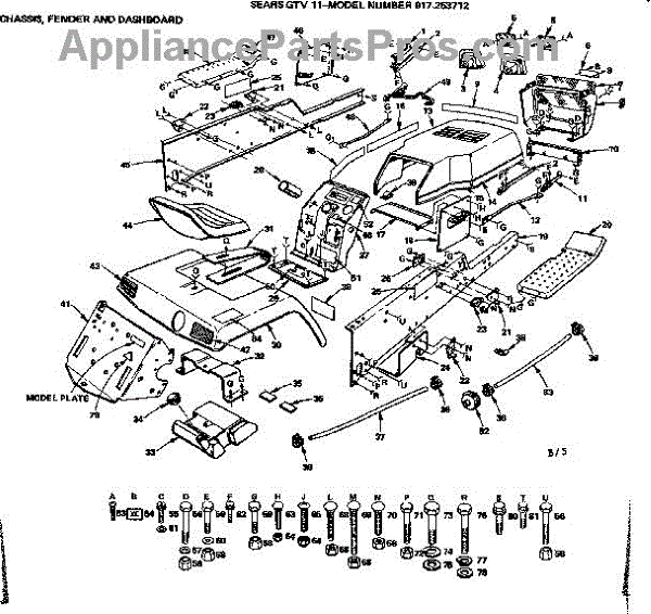 Parts for Craftsman 917253712-1987: Chassis Fender And Dashboard Parts