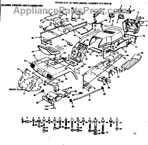 Parts for Craftsman S253735: Chassis, Fender And Dashboard Parts