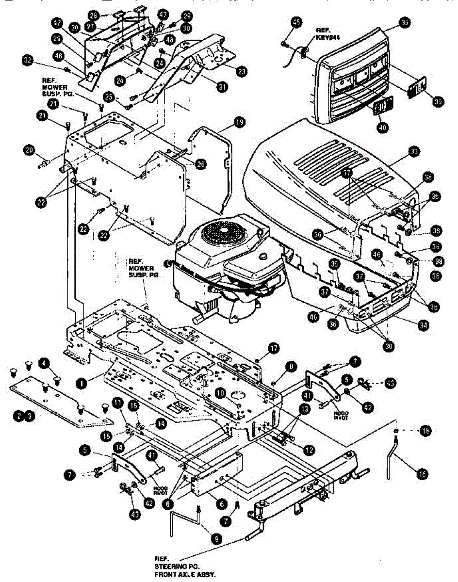 Parts for Craftsman 536257670: Chassis And Hood Assembly Parts