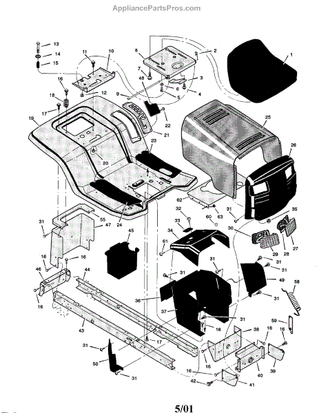 Parts for Murray 42583X9A: Chassis And Hood Parts