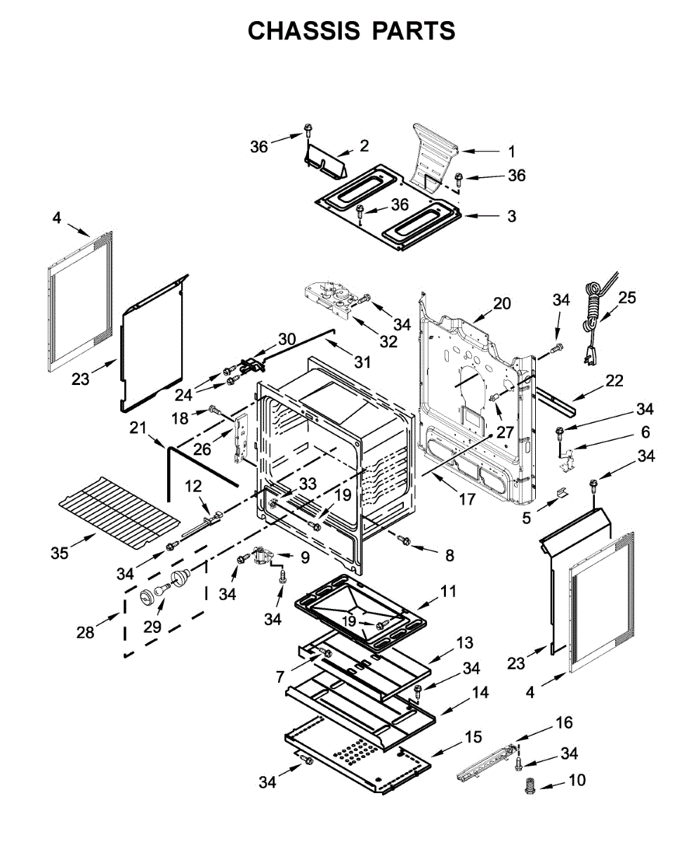 This panel forms the floor of the oven, sitting above the bake element or burner to shield it from spills and provide a smooth, stable surface. Replace a warped or damaged panel to help maintain proper heating and easier cleanup. What it does: