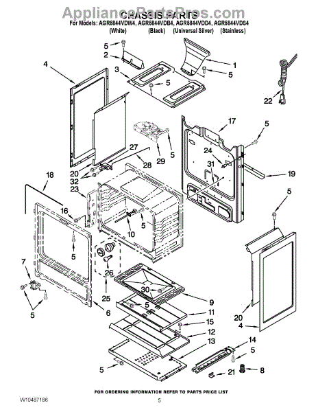 This factory screw secures appliance components to their mounting points. Replace missing, worn, or stripped hardware to restore a tight fit, proper alignment, and quieter operation across the affected assembly.