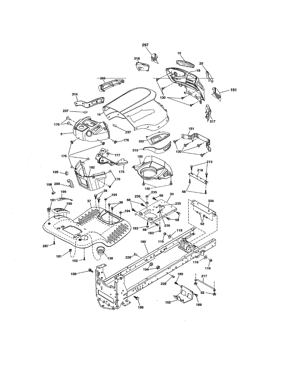 Engine mounting plate for riding mowers and lawn tractors. Welded chassis component that secures the engine to the frame. Replace if cracked or damaged.