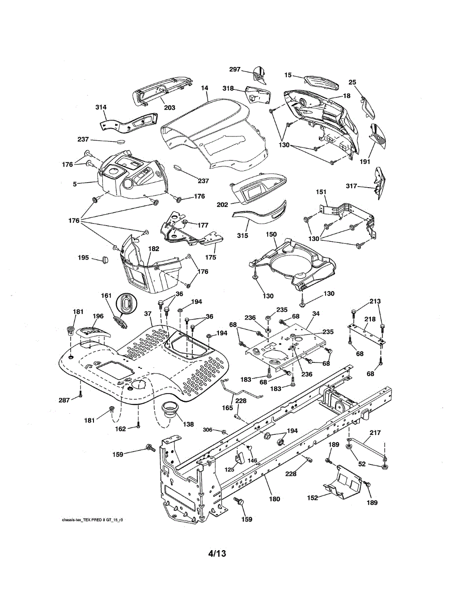 Engine mounting plate for riding mowers and lawn tractors. Welded chassis component that secures the engine to the frame. Replace if cracked or damaged.