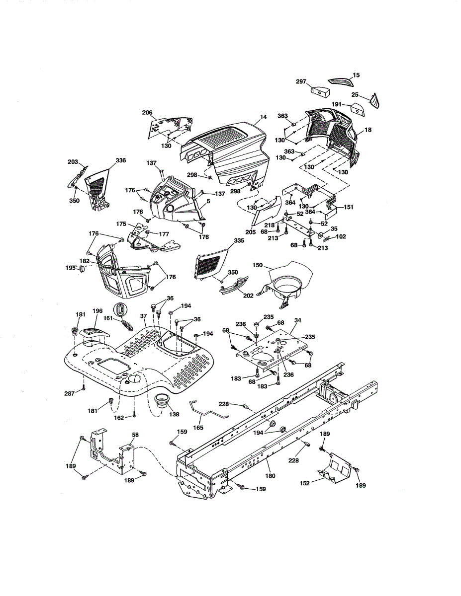 Engine mounting plate for riding mowers and lawn tractors. Welded chassis component that secures the engine to the frame. Replace if cracked or damaged.