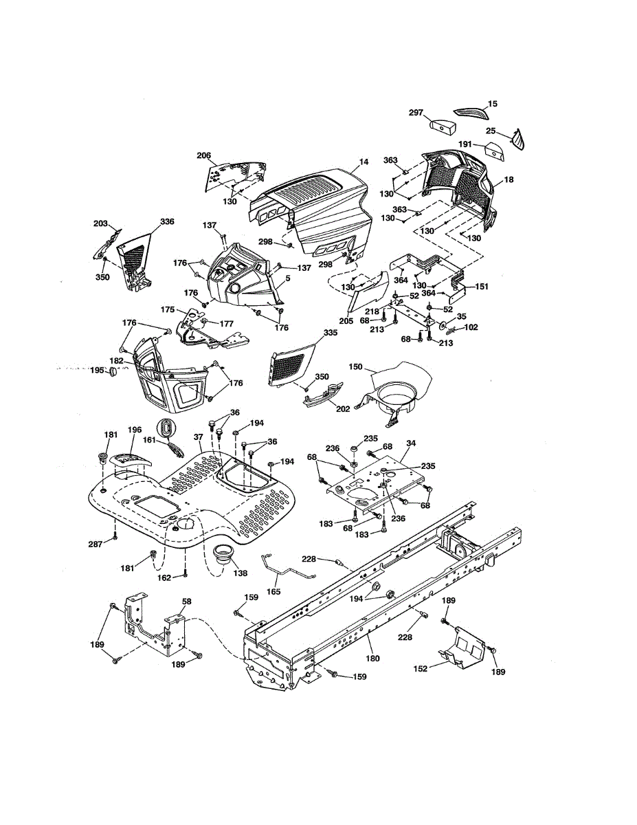 Engine mounting plate for riding mowers and lawn tractors. Welded chassis component that secures the engine to the frame. Replace if cracked or damaged.