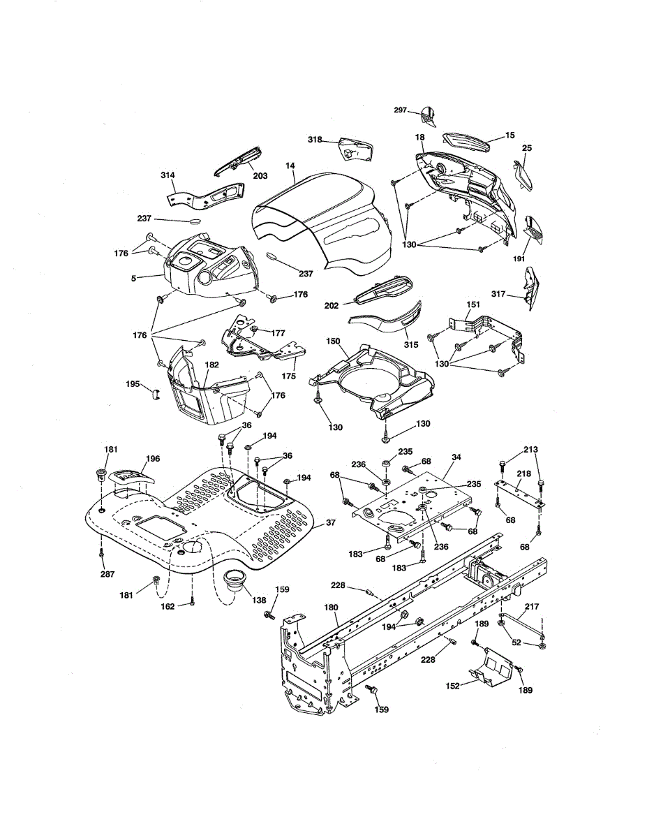 Engine mounting plate for riding mowers and lawn tractors. Welded chassis component that secures the engine to the frame. Replace if cracked or damaged.