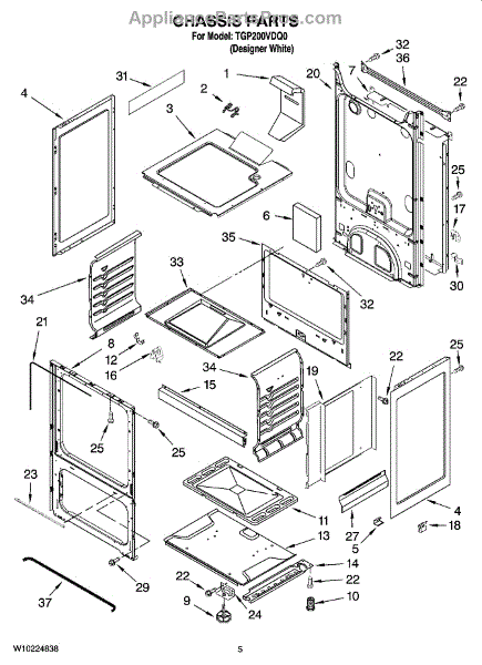 This factory screw secures appliance components to their mounting points. Replace missing, worn, or stripped hardware to restore a tight fit, proper alignment, and quieter operation across the affected assembly.