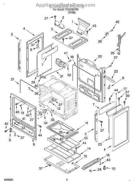 This factory screw secures appliance components to their mounting points. Replace missing, worn, or stripped hardware to restore a tight fit, proper alignment, and quieter operation across the affected assembly.