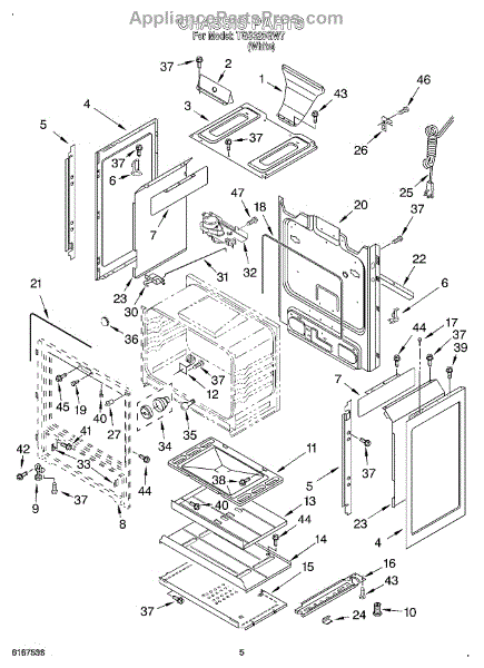 This factory screw secures appliance components to their mounting points. Replace missing, worn, or stripped hardware to restore a tight fit, proper alignment, and quieter operation across the affected assembly.