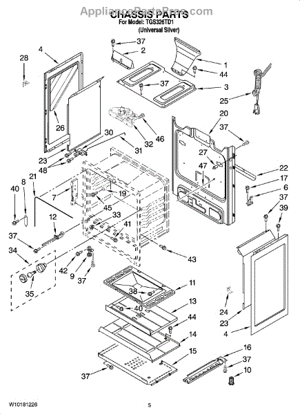 This factory screw secures appliance components to their mounting points. Replace missing, worn, or stripped hardware to restore a tight fit, proper alignment, and quieter operation across the affected assembly.