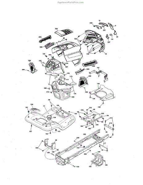Replacement hood assembly for lawn tractors. Covers and protects engine and internal components from weather, debris, and damage. Needed when original is cracked or broken.