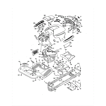 Main chassis frame assembly for riding mowers and lawn tractors. Replace this welded structural component if cracked, bent, or damaged from impact.