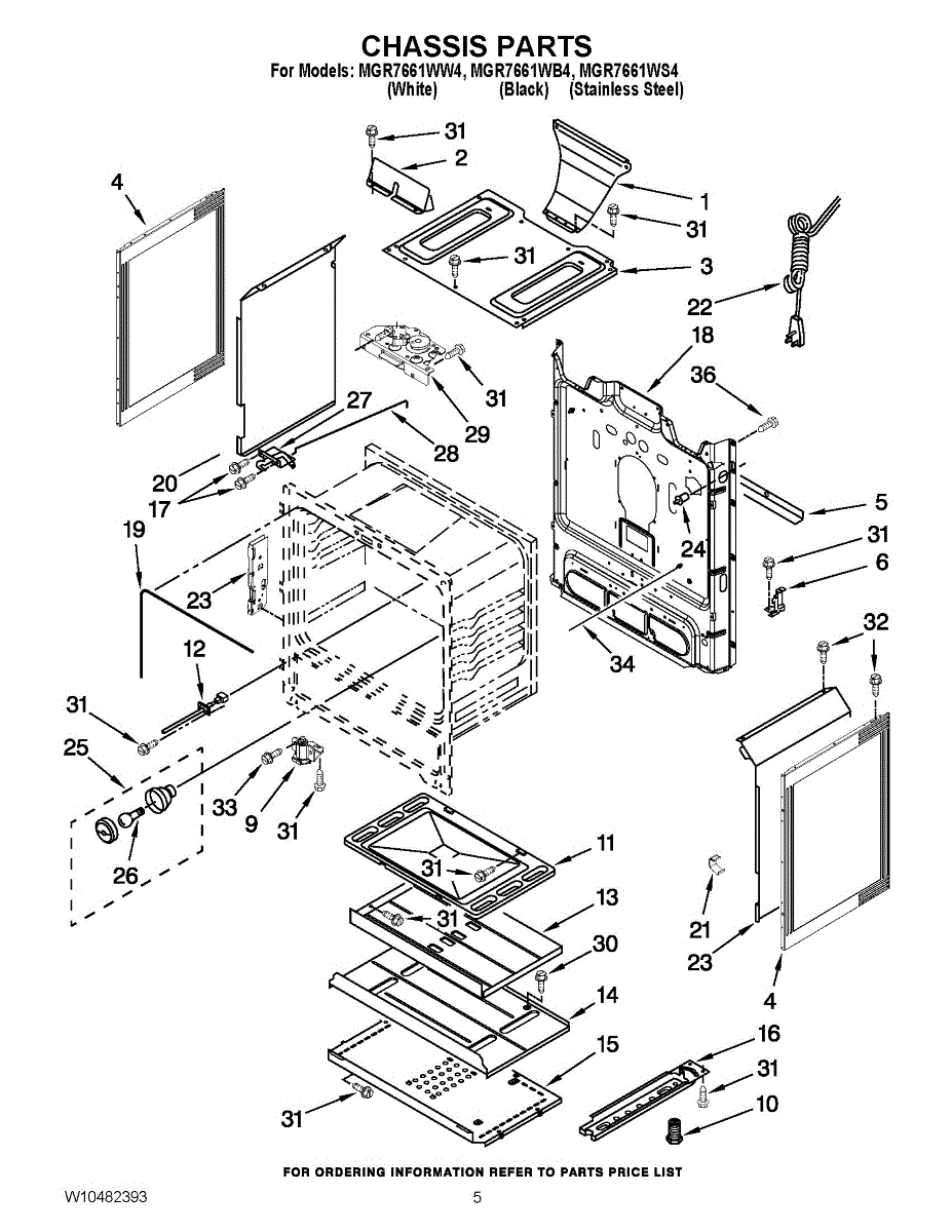 Lower heat shield for gas ranges. Protects internal components from excessive heat. Replace if cracked, warped, or damaged to maintain proper insulation.