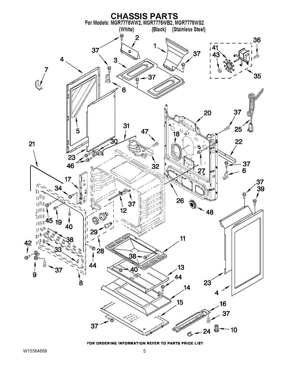 Lower heat shield for gas ranges. Protects internal components from excessive heat. Replace if cracked, warped, or damaged to maintain proper insulation.