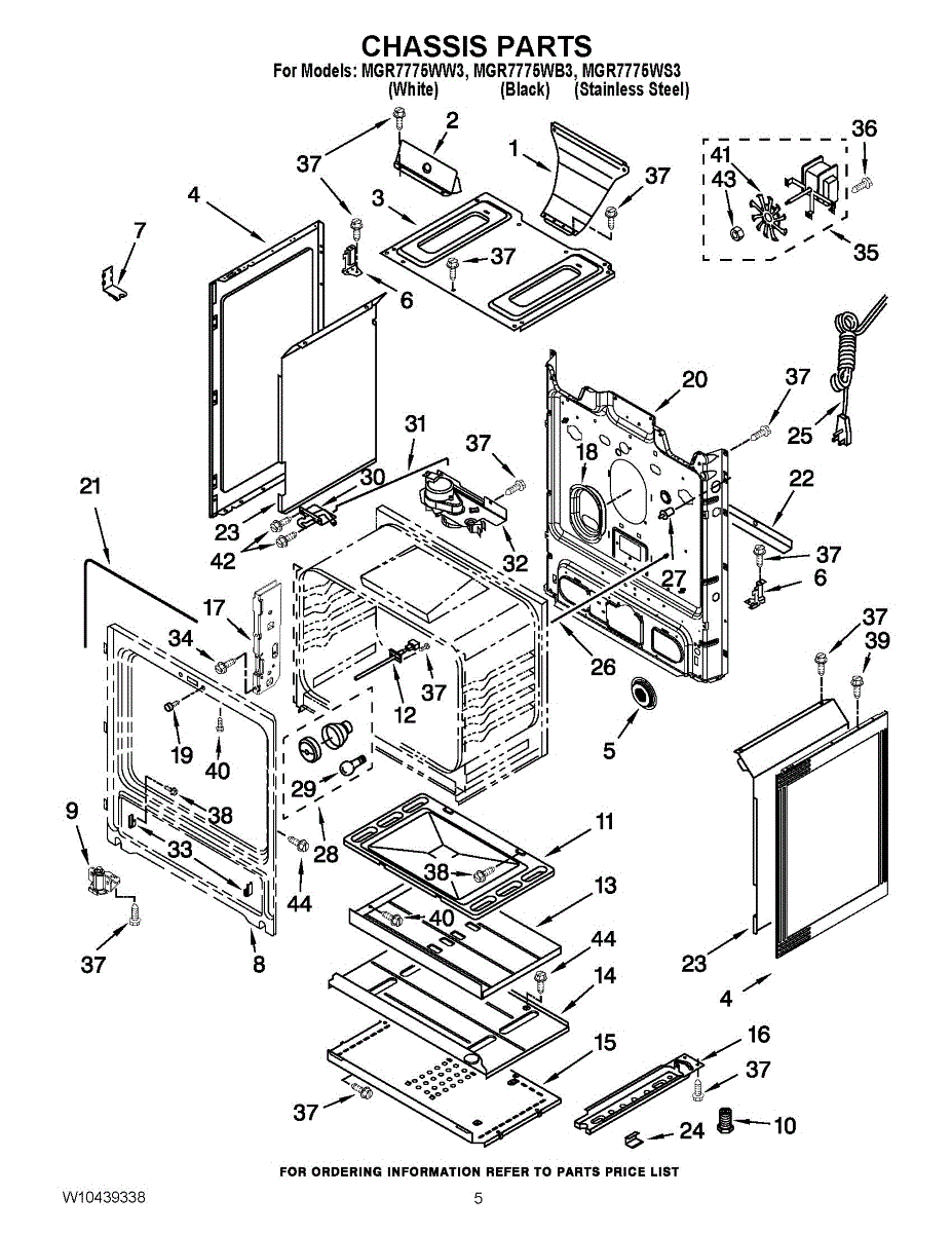 Lower heat shield for gas ranges. Protects internal components from excessive heat. Replace if cracked, warped, or damaged to maintain proper insulation.