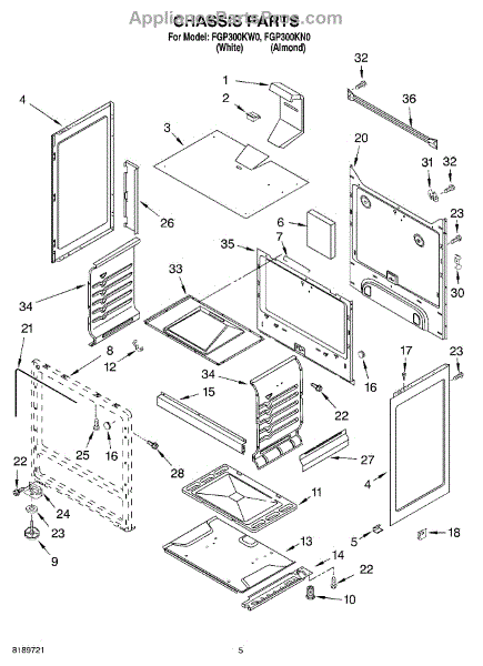 This factory screw secures appliance components to their mounting points. Replace missing, worn, or stripped hardware to restore a tight fit, proper alignment, and quieter operation across the affected assembly.