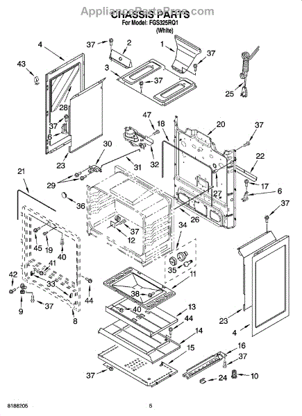 This factory screw secures appliance components to their mounting points. Replace missing, worn, or stripped hardware to restore a tight fit, proper alignment, and quieter operation across the affected assembly.