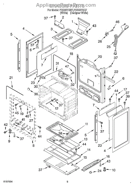 This factory screw secures appliance components to their mounting points. Replace missing, worn, or stripped hardware to restore a tight fit, proper alignment, and quieter operation across the affected assembly.