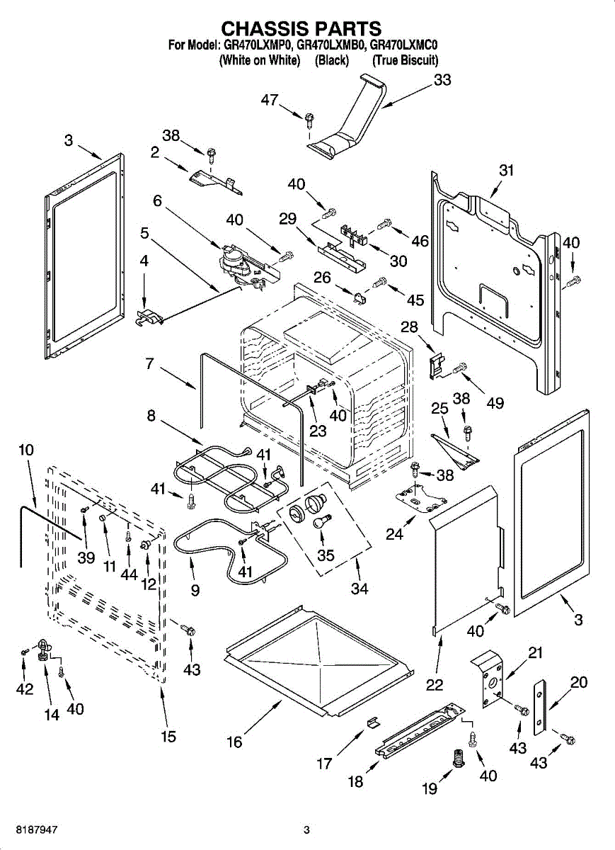 Replacement mounting screw for securing range panels, brackets, and internal components. Replace missing, stripped, or rusted screws to restore fit.
