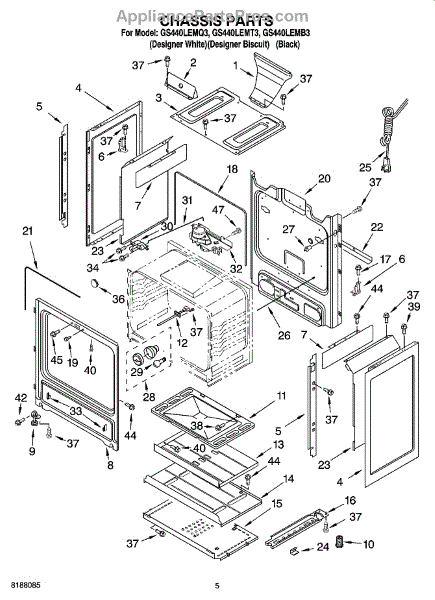 This factory screw secures appliance components to their mounting points. Replace missing, worn, or stripped hardware to restore a tight fit, proper alignment, and quieter operation across the affected assembly.