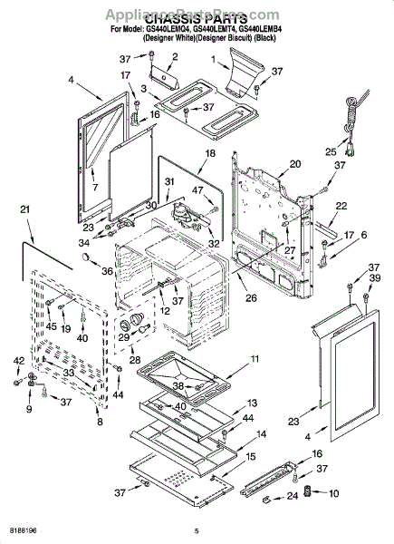 This factory screw secures appliance components to their mounting points. Replace missing, worn, or stripped hardware to restore a tight fit, proper alignment, and quieter operation across the affected assembly.