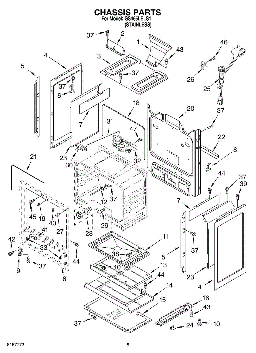 Lower heat shield for gas ranges. Protects internal components from excessive heat. Replace if cracked, warped, or damaged to maintain proper insulation.