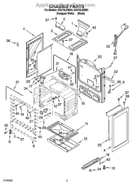 This factory screw secures appliance components to their mounting points. Replace missing, worn, or stripped hardware to restore a tight fit, proper alignment, and quieter operation across the affected assembly.