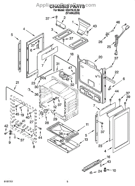 This factory screw secures appliance components to their mounting points. Replace missing, worn, or stripped hardware to restore a tight fit, proper alignment, and quieter operation across the affected assembly.
