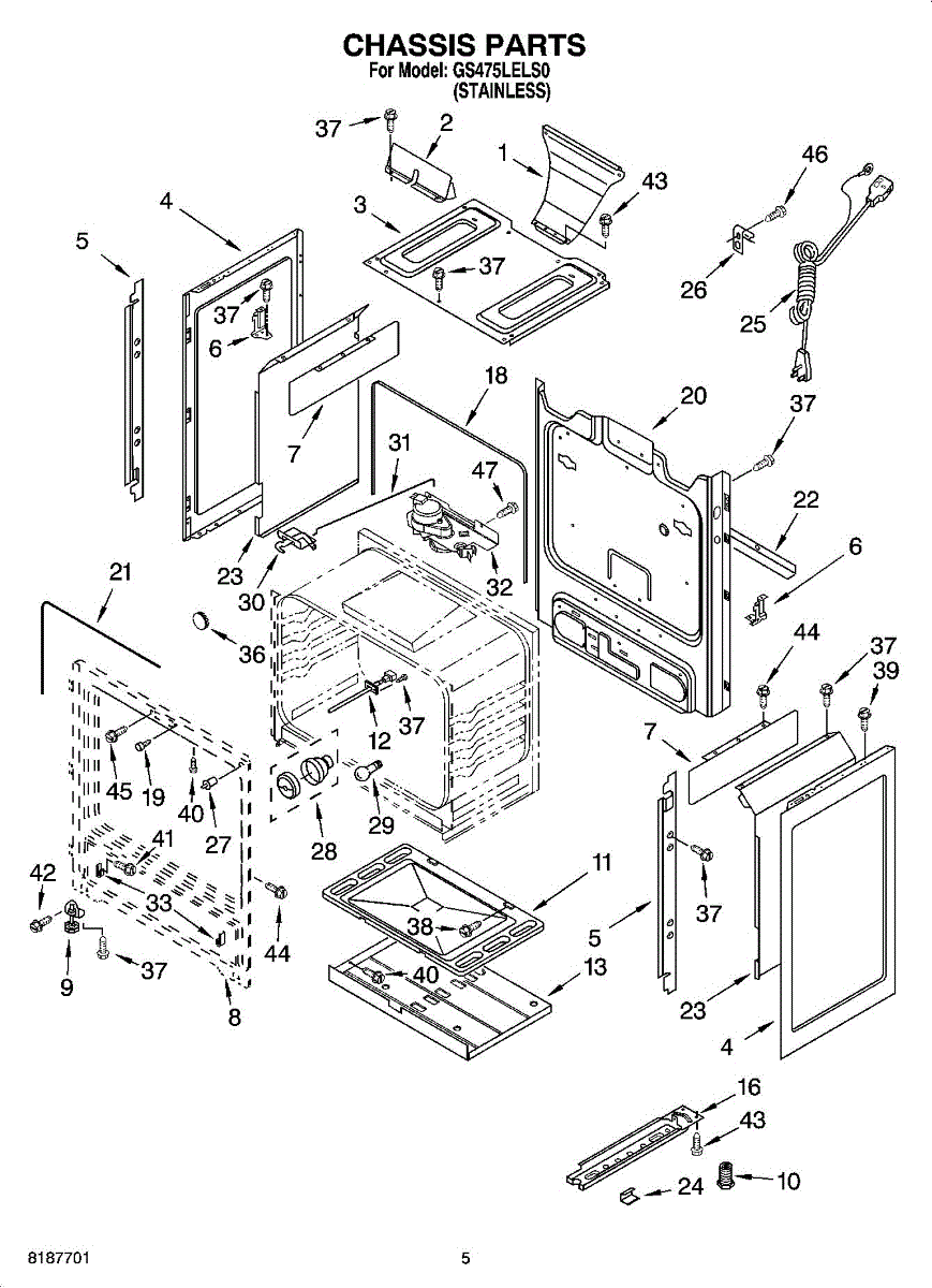 Fastens panels, brackets, and trim pieces on ranges and vacuums. Replace this screw if missing, stripped, or damaged to secure loose components and prevent rattling or misalignment.