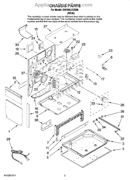 This factory screw secures appliance components to their mounting points. Replace missing, worn, or stripped hardware to restore a tight fit, proper alignment, and quieter operation across the affected assembly.