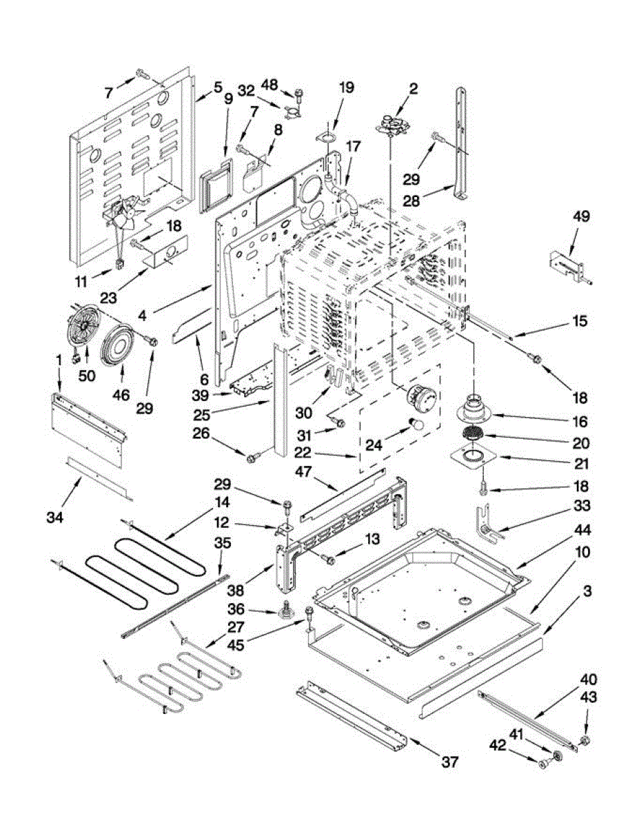 Bottom panel for your range chassis. Replaces cracked, rusted, or damaged base panels. Installs under the appliance to protect internal components.