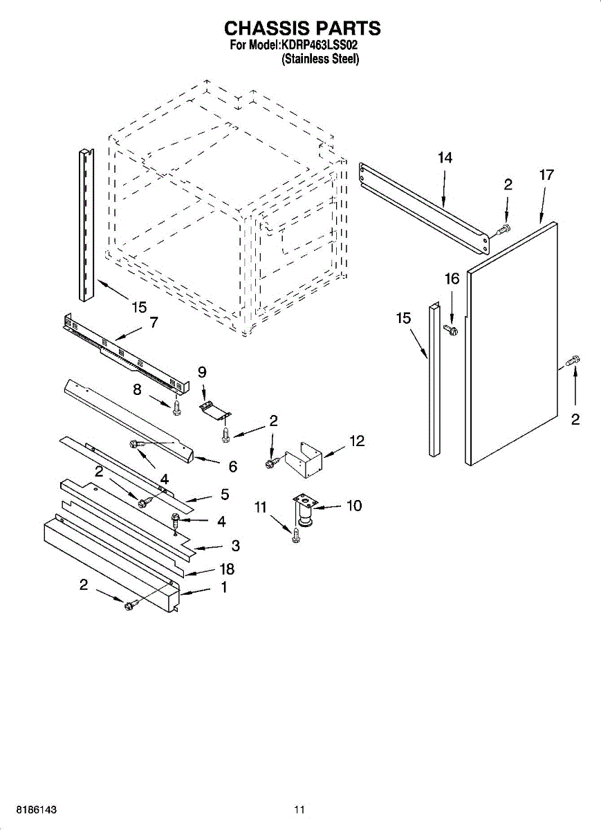Replacement mounting screw for securing panels, brackets, and components in appliances. Needed when original fastener is missing, stripped, or damaged.