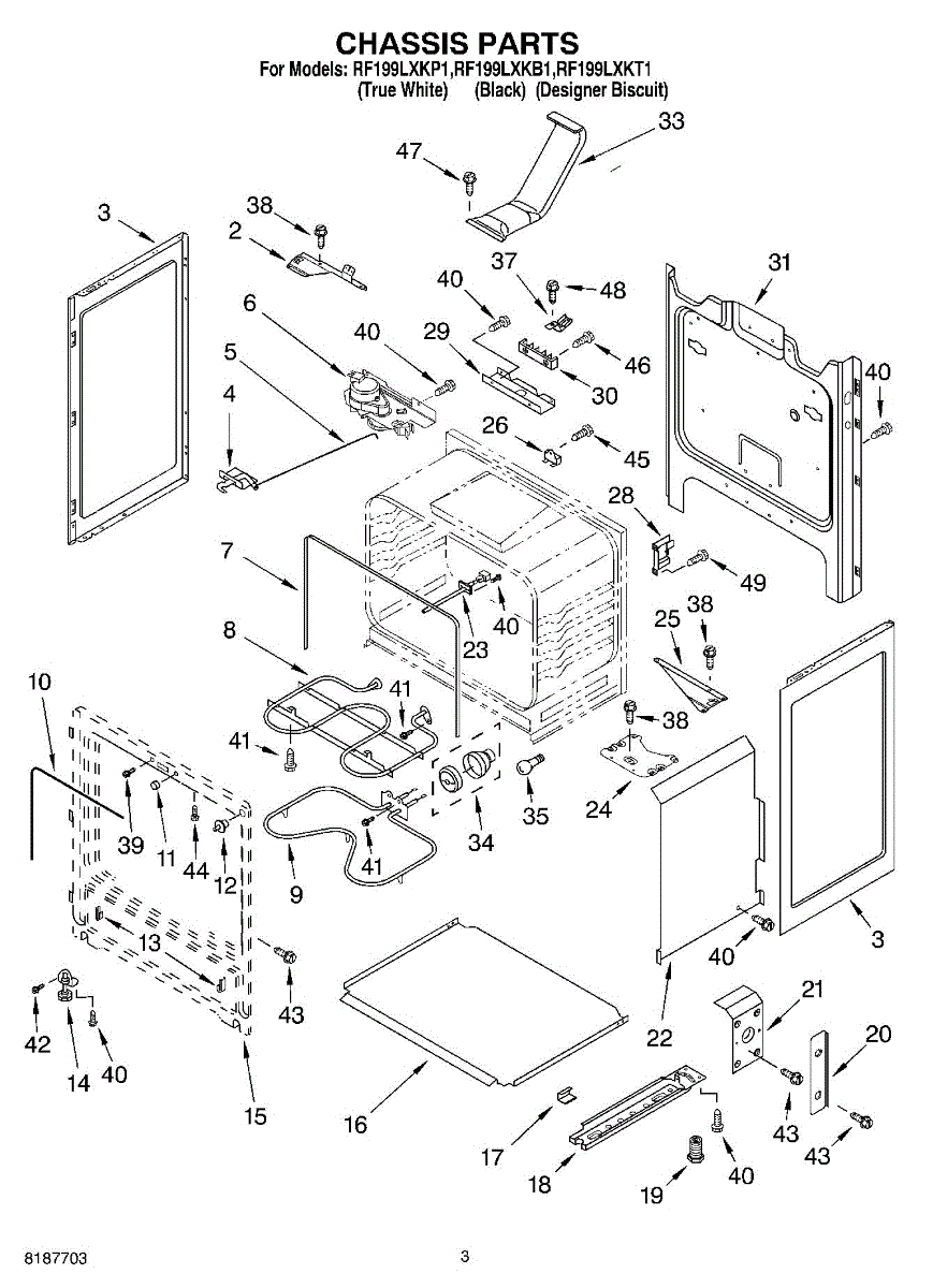 Parts for Whirlpool RF199LXKT1: 03 - Chassis Parts