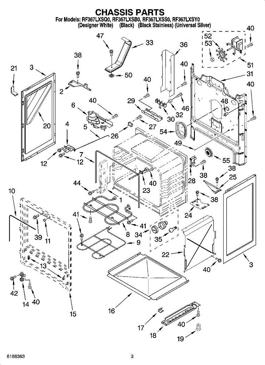 Parts for Whirlpool RF367LXSQ0: 03 - Chassis Parts