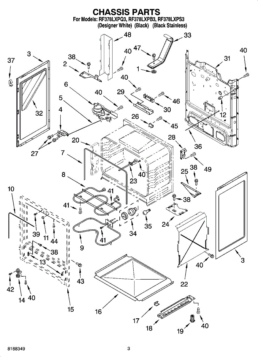 Replacement mounting screw for securing range panels, brackets, and internal components. Replace missing, stripped, or rusted screws to restore fit.