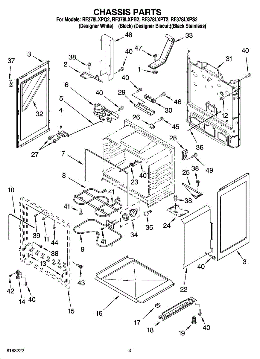 Replacement mounting screw for securing range panels, brackets, and internal components. Replace missing, stripped, or rusted screws to restore fit.