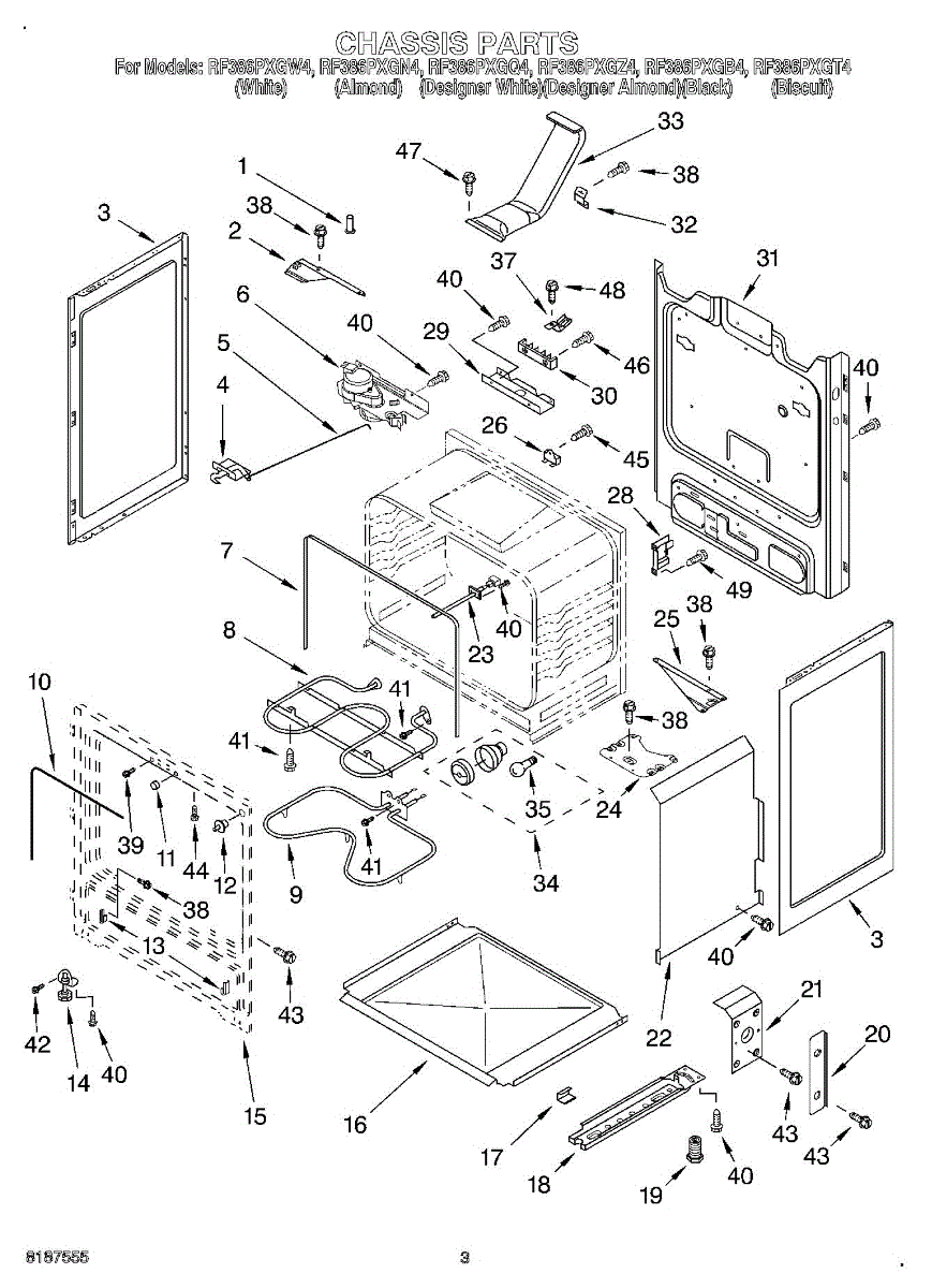 Parts for Whirlpool RF386PXGW4: 03 - Chassis Parts
