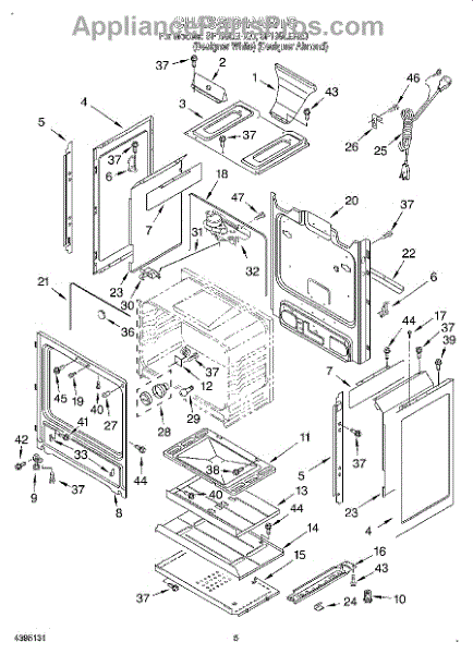 This factory screw secures appliance components to their mounting points. Replace missing, worn, or stripped hardware to restore a tight fit, proper alignment, and quieter operation across the affected assembly.
