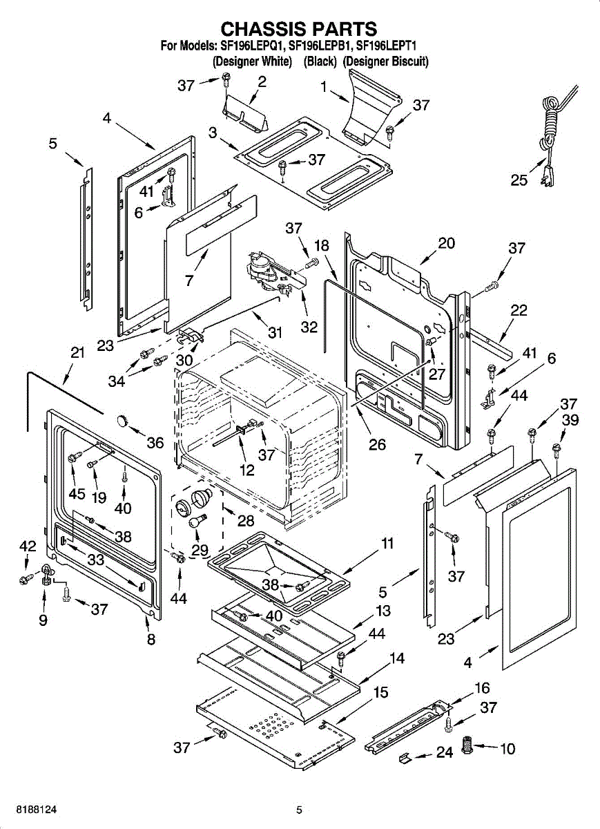 This factory screw secures appliance components to their mounting points. Replace missing, worn, or stripped hardware to restore a tight fit, proper alignment, and quieter operation across the affected assembly.