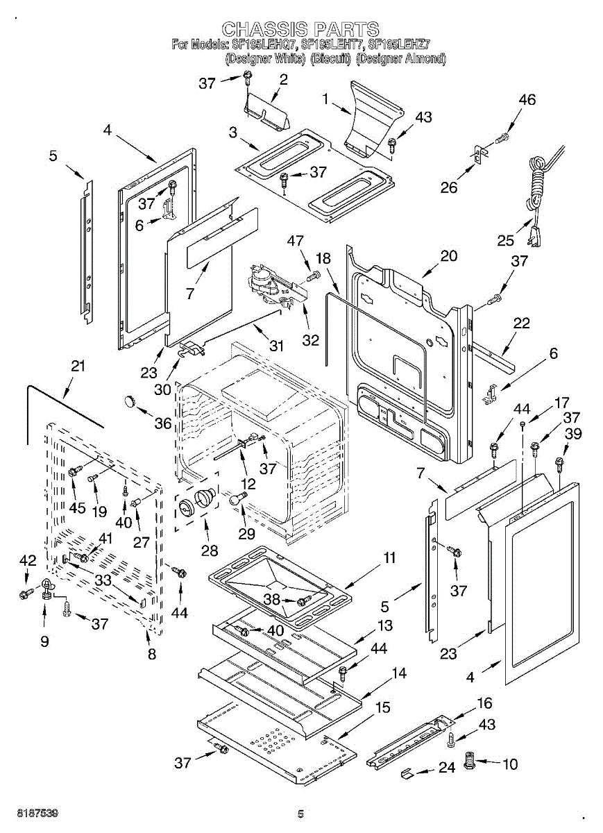 Fastens panels, brackets, and trim pieces on ranges and vacuums. Replace this screw if missing, stripped, or damaged to secure loose components and prevent rattling or misalignment.