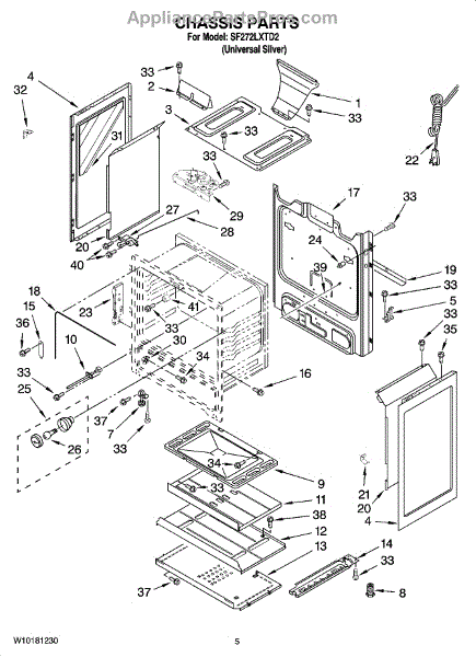This factory screw secures appliance components to their mounting points. Replace missing, worn, or stripped hardware to restore a tight fit, proper alignment, and quieter operation across the affected assembly.