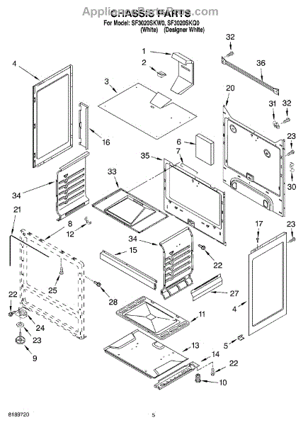 This factory screw secures appliance components to their mounting points. Replace missing, worn, or stripped hardware to restore a tight fit, proper alignment, and quieter operation across the affected assembly.