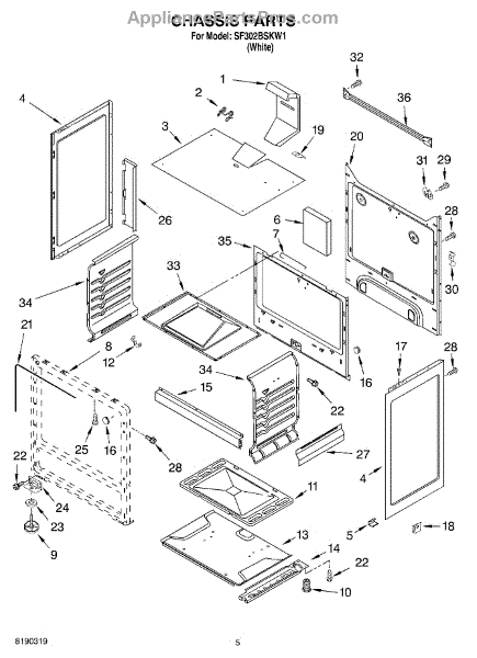 This factory screw secures appliance components to their mounting points. Replace missing, worn, or stripped hardware to restore a tight fit, proper alignment, and quieter operation across the affected assembly.