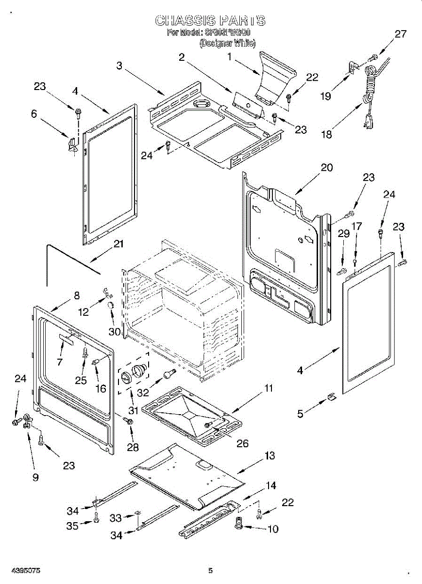 This factory screw secures appliance components to their mounting points. Replace missing, worn, or stripped hardware to restore a tight fit, proper alignment, and quieter operation across the affected assembly.