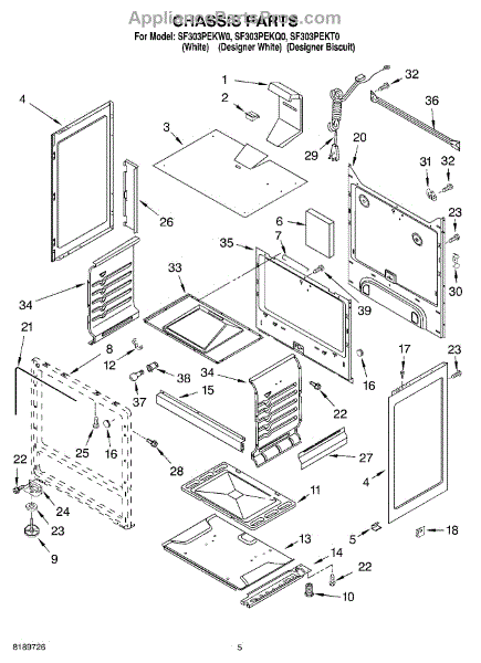 Parts for Whirlpool SF303PEKW0: 04 - Chassis Parts